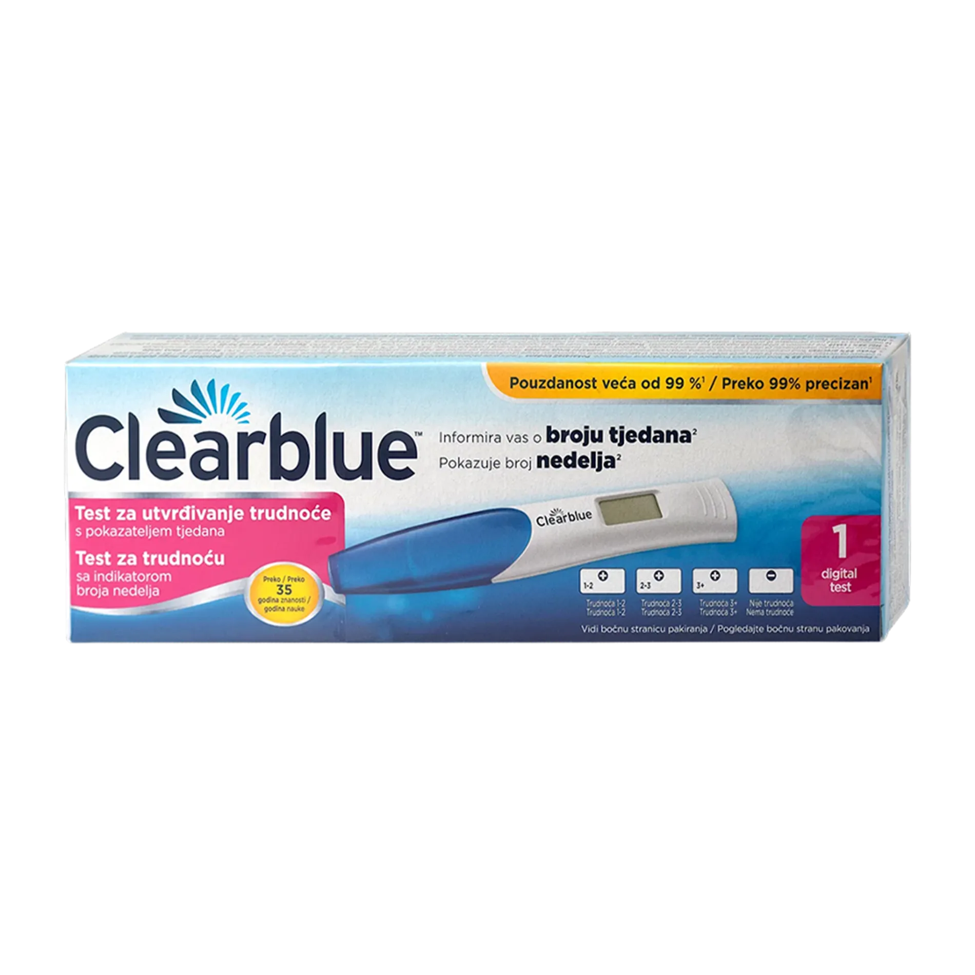 • Dodatni prikaz sedmica trudnoće: neki testovi pokazuje uz rezultat i broj sedmica trudnoće (npr. „2–3 sedmice“ znači koliko je prošlo od začeća).